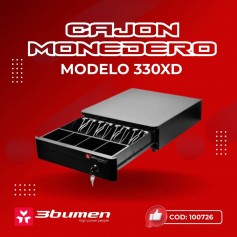 El Cajón Monedero 3BUMEN 330XD está diseñado para ofrecer seguridad, organización y durabilidad en la gestión de efectivo dentro de cualquier entorno comercial. Fabricado en acero de alta calidad y equipado con una bandeja plástica resistente, este cajón garantiza una operación suave y confiable incluso en jornadas de uso continuo. Su mecanismo con llave y su compatibilidad con sistemas POS mediante puerto RJ11 lo convierten en una solución moderna, práctica y adaptable a todo tipo de puntos de pago.