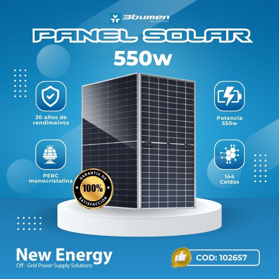 El panel solar 3BUMEN Hi-Fi 550W está diseñado para ofrecer máximo rendimiento energético y una alta durabilidad incluso en condiciones ambientales extremas. Su tecnología PERC monocristalina y su tolerancia positiva de potencia (0 ~ +3%) garantizan una producción estable y eficiente, convirtiéndolo en una solución confiable para proyectos residenciales, comerciales o industriales que buscan energía limpia y sostenida a largo plazo.